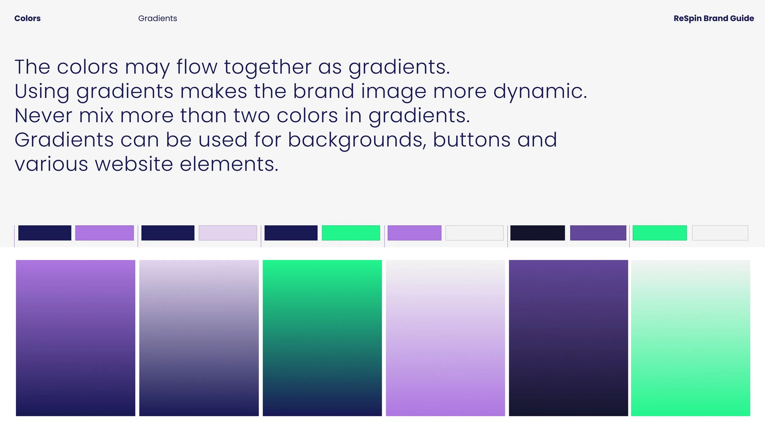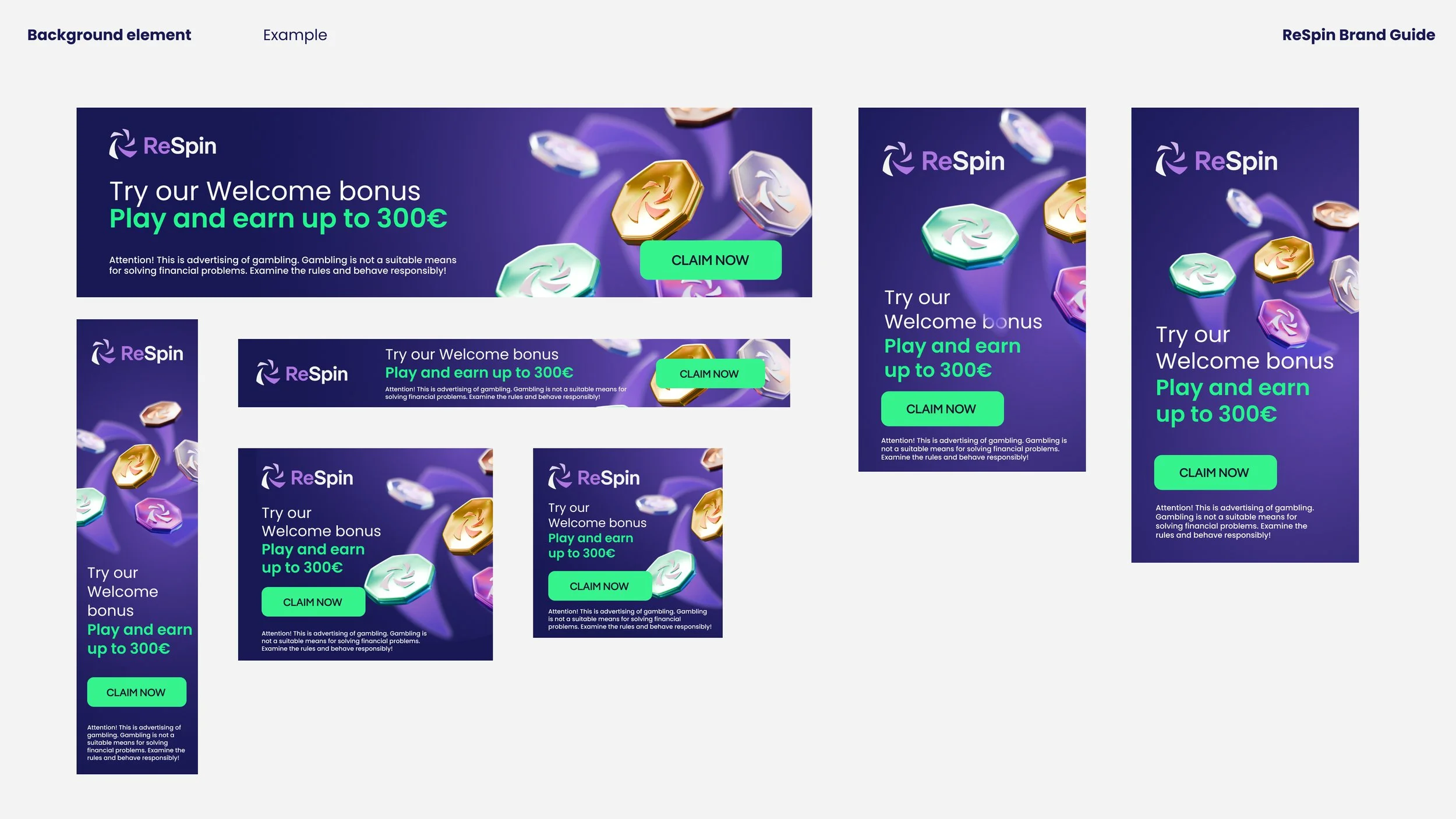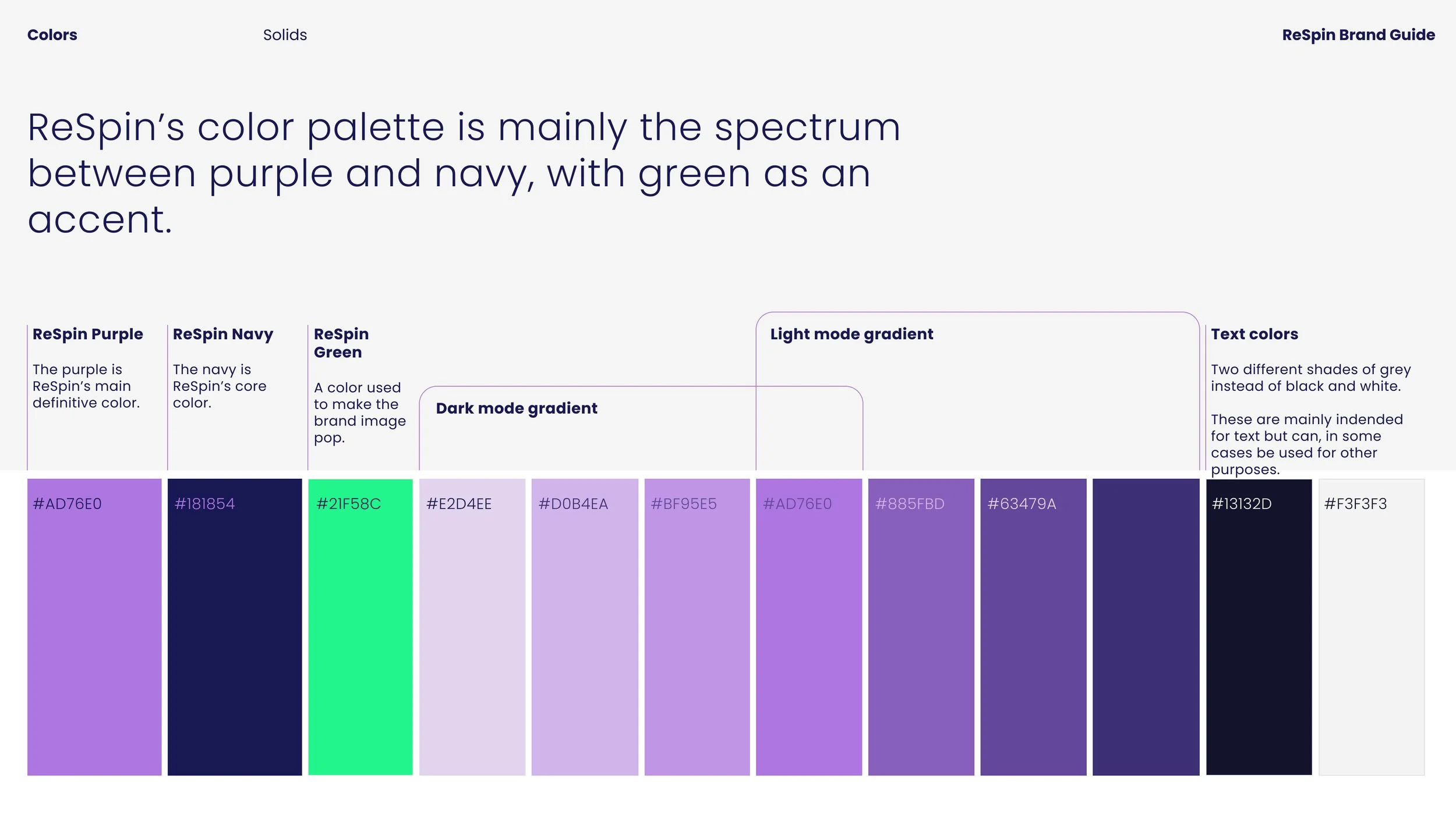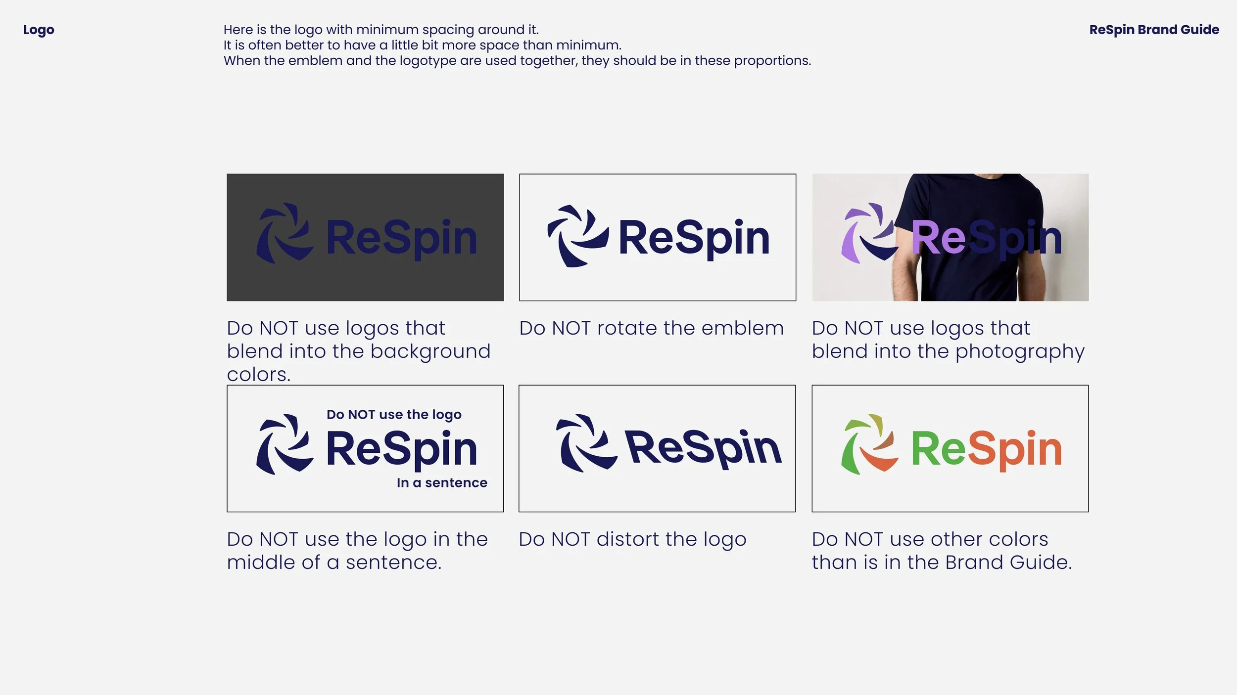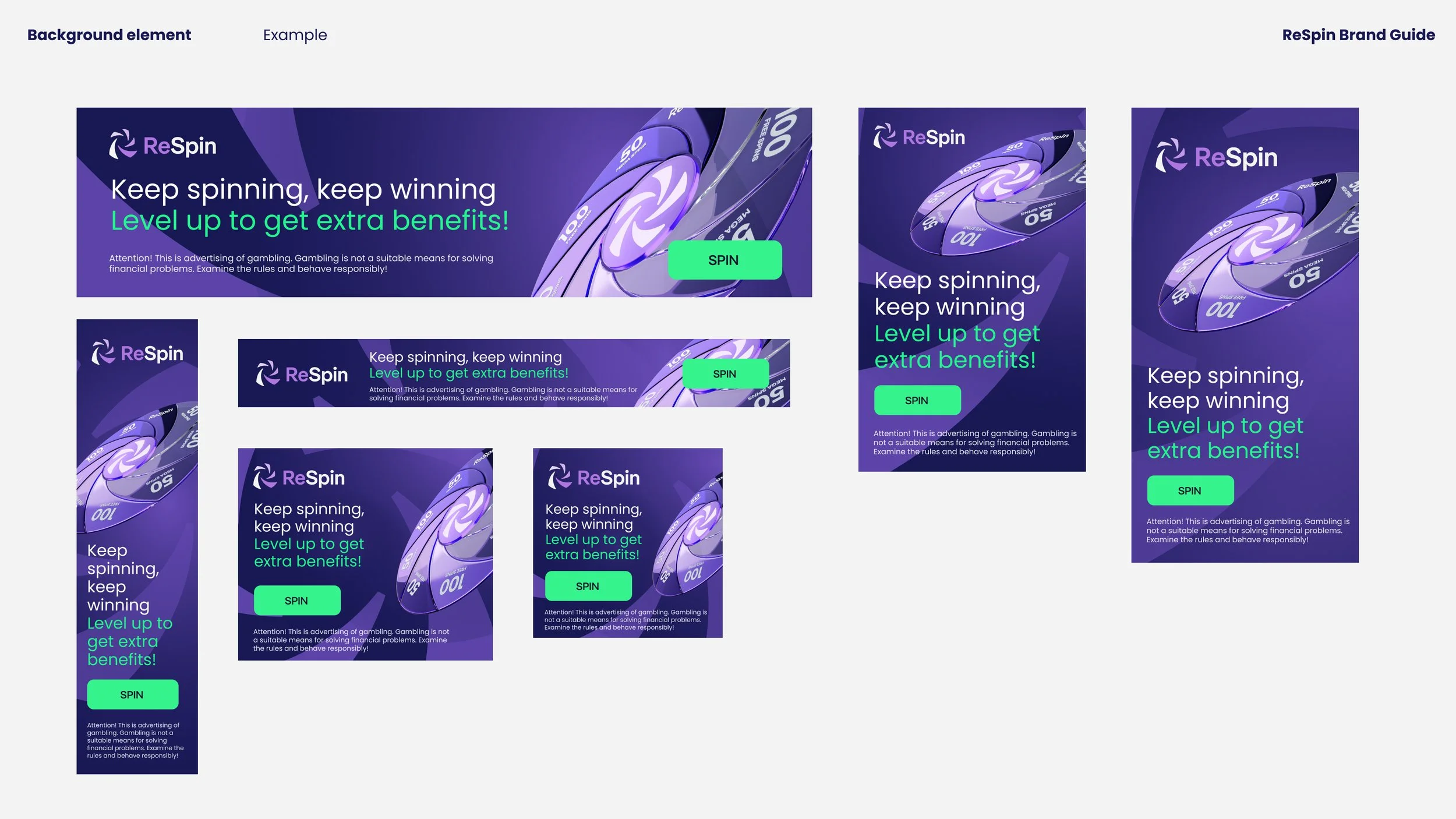 ReSpin vildi skera sig sem mest frá samkeppninni í útliti og gefa til kynna með hönnun framúrstefnulega nálgun síðunnar, t.a.m. hvað varðar veðmál með rafmyntum. Litir ReSpin voru valdir út frá þessum forsendum. Fjólublár, sem er alla jafna ekki tengdur við karllæga hluti líkt og fjárhættuspil, er nánast ekki til á þessum markaði og græni liturinn til stuðnings birtist víða í samhengi við rafmyntir.