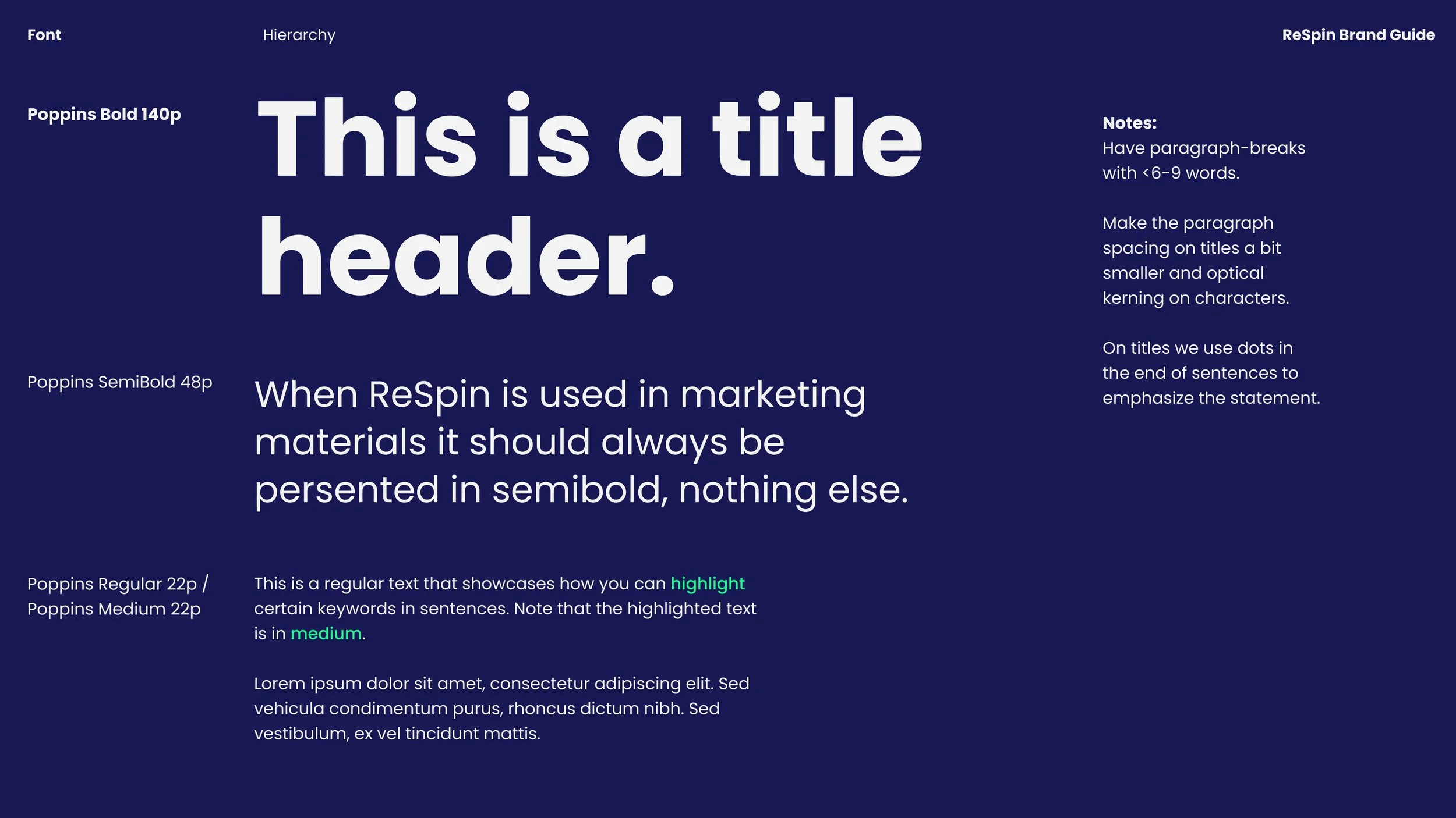Ákveðið var að fara hreinlega, látlausa og nútímalega leið hvað varðar týpógrafíu og form, ólíkt flestum samkeppnisaðilum ReSpin sem hafa alla jafna talsvert „háværara“ útlit. Nóg þótti að leikirnir sjálfir sem finna má á síðunni séu litríkir og glysgjarnir.